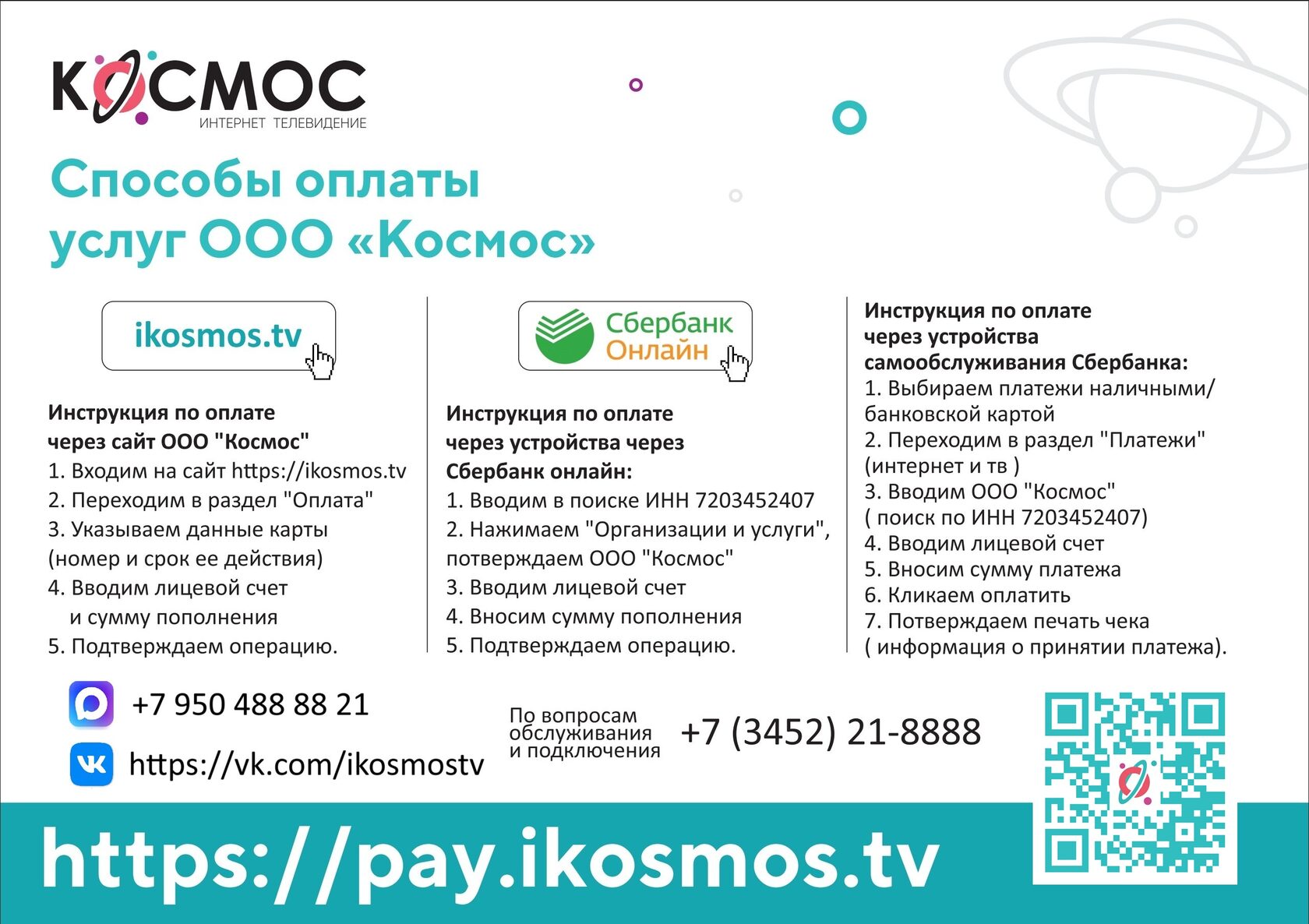 ✔️ Оплата на нашем сайте https://pay.ikosmos.tv/